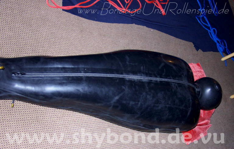 Einem fast fesselfreien Freitag-Abend folgten ein Samstag-Nachmittag in kleiner Runde mit Zwangsjacken (die anderen sind bei Eiseskälte durch Bamberg getigert) und ein laaanger Samstag-Abend, an dessen Ende shybond in einem aufblasbaren Latex-Schlafsack verschwand und wie ein gestrandeter Wal durch den Raum gerollt wurde.