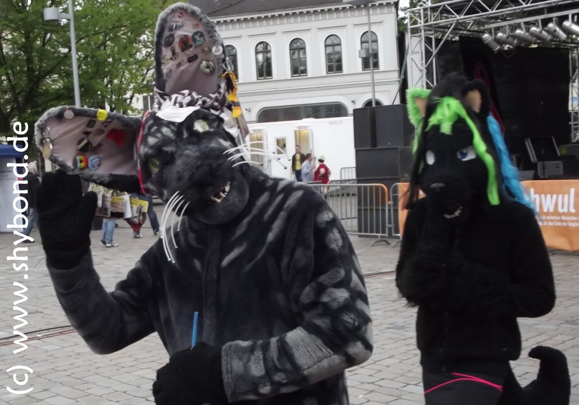 Die Parade selbst war mehr ein Techno-Umzug, aber auf dem Festival-Platz gab es mehr außergewöhnliche Personen als in Braunschweig *Daumen-hoch*