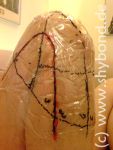 Bei den Hinterpfoten fehlt noch der Teil, der die Füße umschließt und verhindert, das die Pfoten immer nach unten rutschen ...