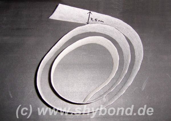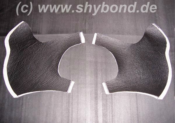 (merke : Kunstleder hat einen Textilrücken, also alles doppelt nehmen), in der Mitte zusammennähen, einen schmalen Streifen ausschneiden und als Biese rumherum annähen.