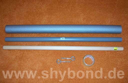 Man hole sich aus dem Baumarkt 1m Isolierschlauch (1Zoll), 1m HT-Rohr (40mm), 1m Holzstab 35mm, 2 Ösenschrauben (8x80)